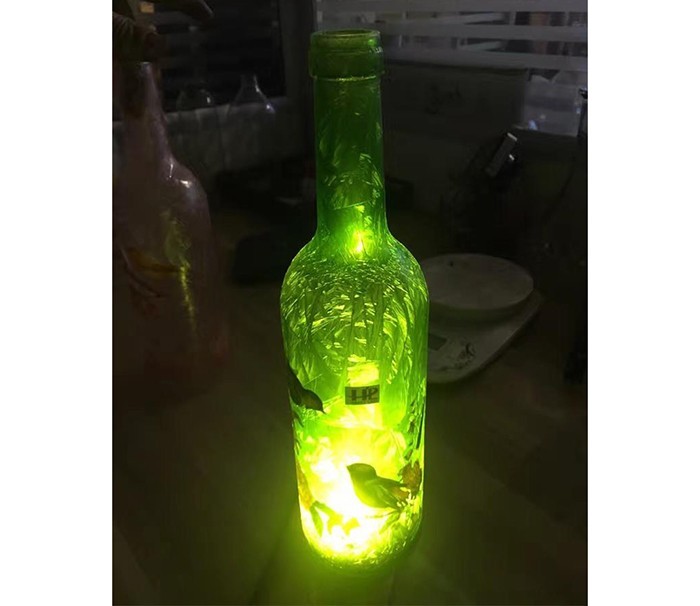 蒙砂酒瓶是在制品玻璃上,粘附一定大小面積的玻璃色釉粉,玻璃瓶廠經(jīng)過(guò)580~600℃的高溫烘烤,使玻璃色釉涂層凝結(jié)在玻璃外表,并顯現(xiàn)出具有與玻璃主體不同顏色的一種裝飾辦法。粘附玻璃色釉粉,可用排筆涂刷,亦可用膠輥滾涂。經(jīng)過(guò)絲印加工,能夠得到蒙砂面的樓空?qǐng)D案。 其辦法是:在玻璃制品外表上,絲印一層由阻熔劑構(gòu)成的圖案紋樣。